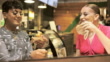 Real time video of gay teenager and early 20s female friend enjoying dinner after fun night out together in Barcelona.
