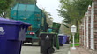 MS Rear view of garbage trucks picking up garbage bins, North Hollywood, California, USA - HD stock video