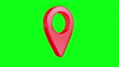 Red map pointer spinning with acceleration. Full seamless loop rotation isolated on the green screen background. Map pin icon. GPS place marker. Location symbol. Chroma key.