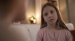 Sad Girl Consoled by Parent on Sofa in Softly Lit Home - 4K stock video