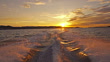A boat driving away from sunset. Shot in super slow motion.