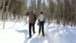 Senior Couple Snowshoeing Outdoors in Winter After Snowstorm - 4K stock video