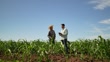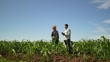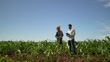 Senior farmer man talking to agronomist at agricultural field - 4K stock video