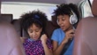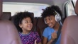 Sisters in the backseat of car singing - 4K stock video