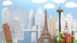 Summer travel concept with a flying airplane on blue sky background. Summer and holiday travel concept in 4K Resolution.