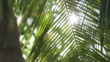 SLOW MO 4K Sun shines through coconut leaves, branch