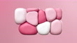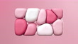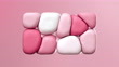 An animation of swirling balls inside of an invisible cube. Pinky pastel tones.