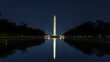 Locked time lapse of the Washington Monument from across the Reflecting Pool on The Mall in Washington, D.C. on a clear night. 8K RAW version available. Please contact sales for more information.