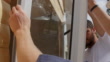 Two construction workers installing window on a new house - 4K stock video