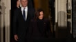 LONDON, ENGLAND - NOVEMBER 1: (AUDIO OMITTED) U.S. Vice President Kamala Harris kisses her husband Douglas Emhoff as they leave 10 Downing Street after a bilateral meeting with Prime Minister Rishi Sunak on November 1, 2023 in London, England. The Vice President is visiting the UK to attend the British government's AI Safety Summit. (Footage by Mark Case/Getty Images)