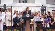 WASHINGTON, DC - JULY 22: (SPEECH) U.S. Vice President Kamala Harris speaks on this year's champions during an NCAA championship teams celebration on the South Lawn of the White House on July 22, 2024 in Washington, DC. U.S. President Joe Biden abandoned his campaign for a second term after weeks of pressure from fellow Democrats to withdraw and just months ahead of the November election, throwing his support behind Harris. (Footage by Andrew Harnik/Getty Images)