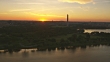 WS AERIAL POV View of Lincoln Memorial and Washington Monument during sunrise / Washington DC, United States - HD stock video