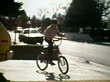 1983 Wide shot boy riding bike through suburban yard - stock video