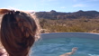 Woman relaxing in a hot tub at her vacation rental, desert area - 4K stock video