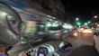 Woman riding a motorcycle travel in the city at night - 4K stock video
