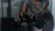 Woman works out on an exercise bike - 4K stock video