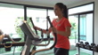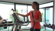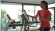Young woman exercise by indoor bike in hotel gym. - 4K stock video