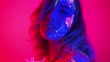 Portrait of a beautiful young woman wearing fluorescent makeup and drinking a cocktail.